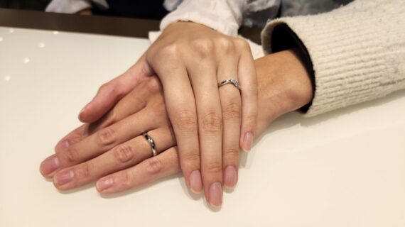 お選び頂いたNIWAKAの結婚指輪「せせらぎ」は、清らかな水の音のように穏やかな人生を歩むイメージでお作りしており、お二人の雰囲気にぴったりですね!