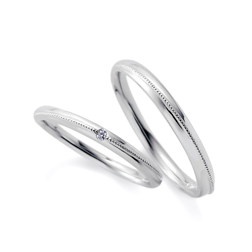 白く上品な輝きのダイヤモンドは、シンプルな結婚指輪が良いけど、ダイヤモンドなしのデザインは少し寂しいと感じている方にもおすすめ。ギラギラした華やかな印象にならずに、落ち着いた雰囲気でダイヤモンドの輝きをお楽しみいただけます。