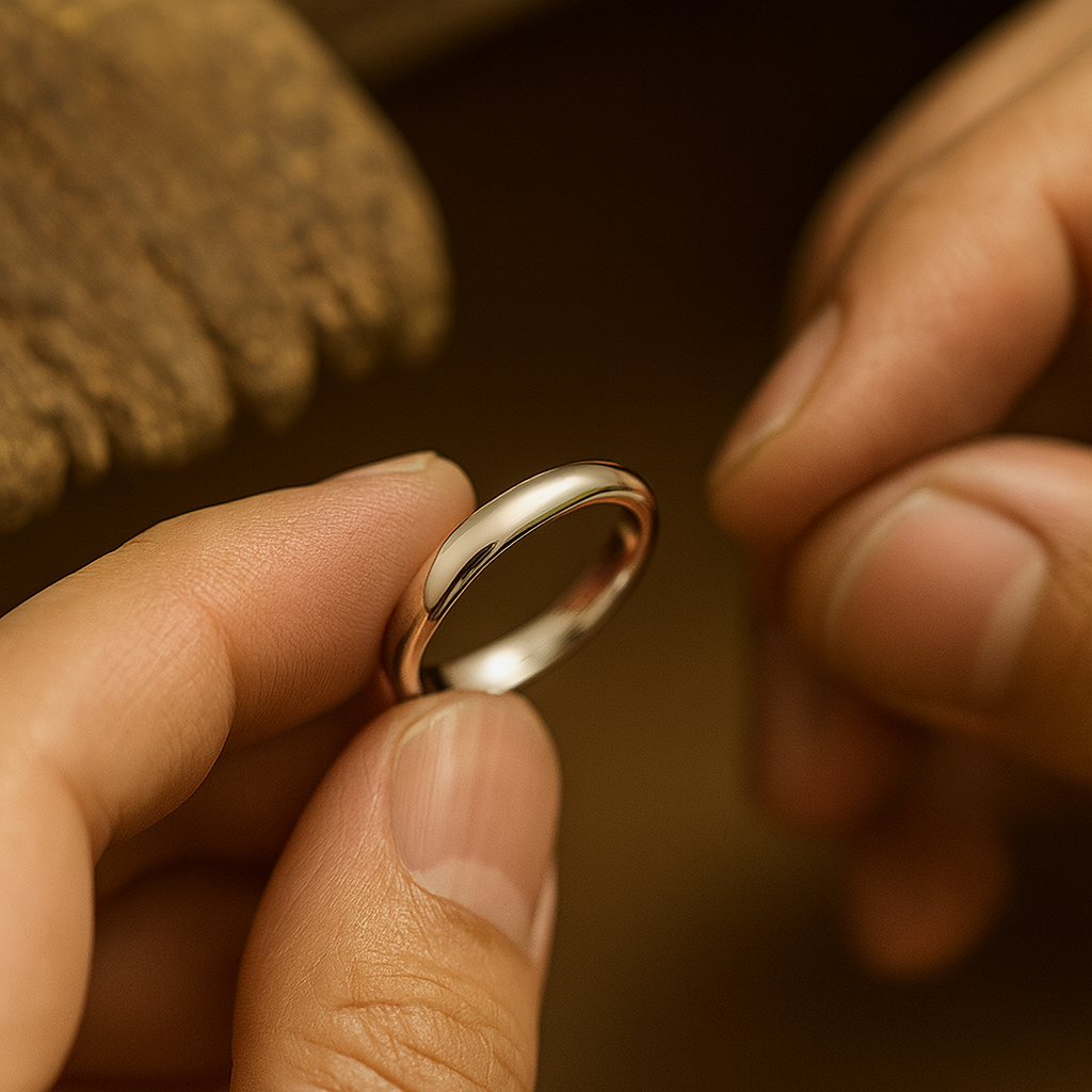 ことほぎの指輪内側の丸みは、薬指にしっとりと馴染むような気持ちよさ。