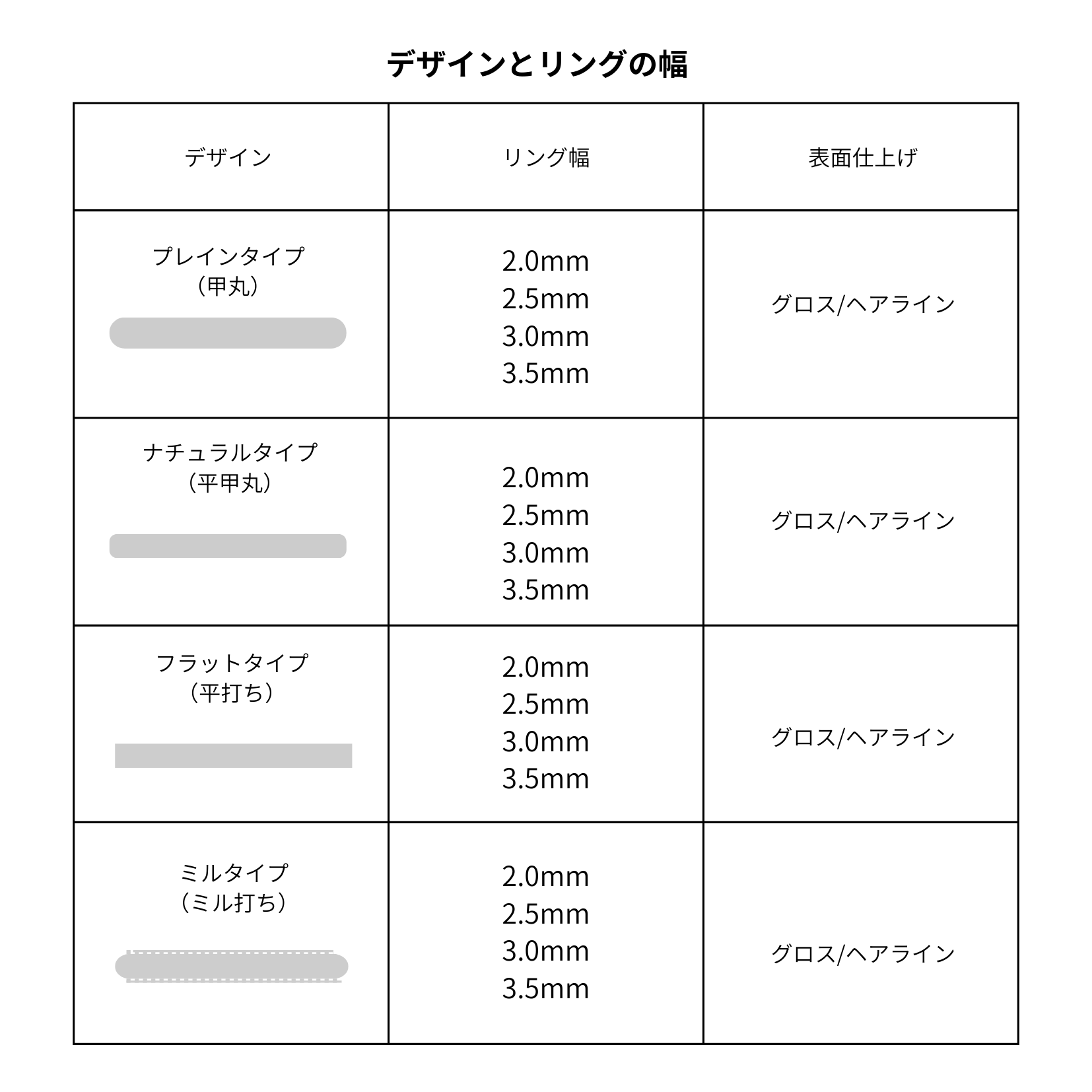 指輪のデザインと幅は、それぞれ4種類から選択可能。