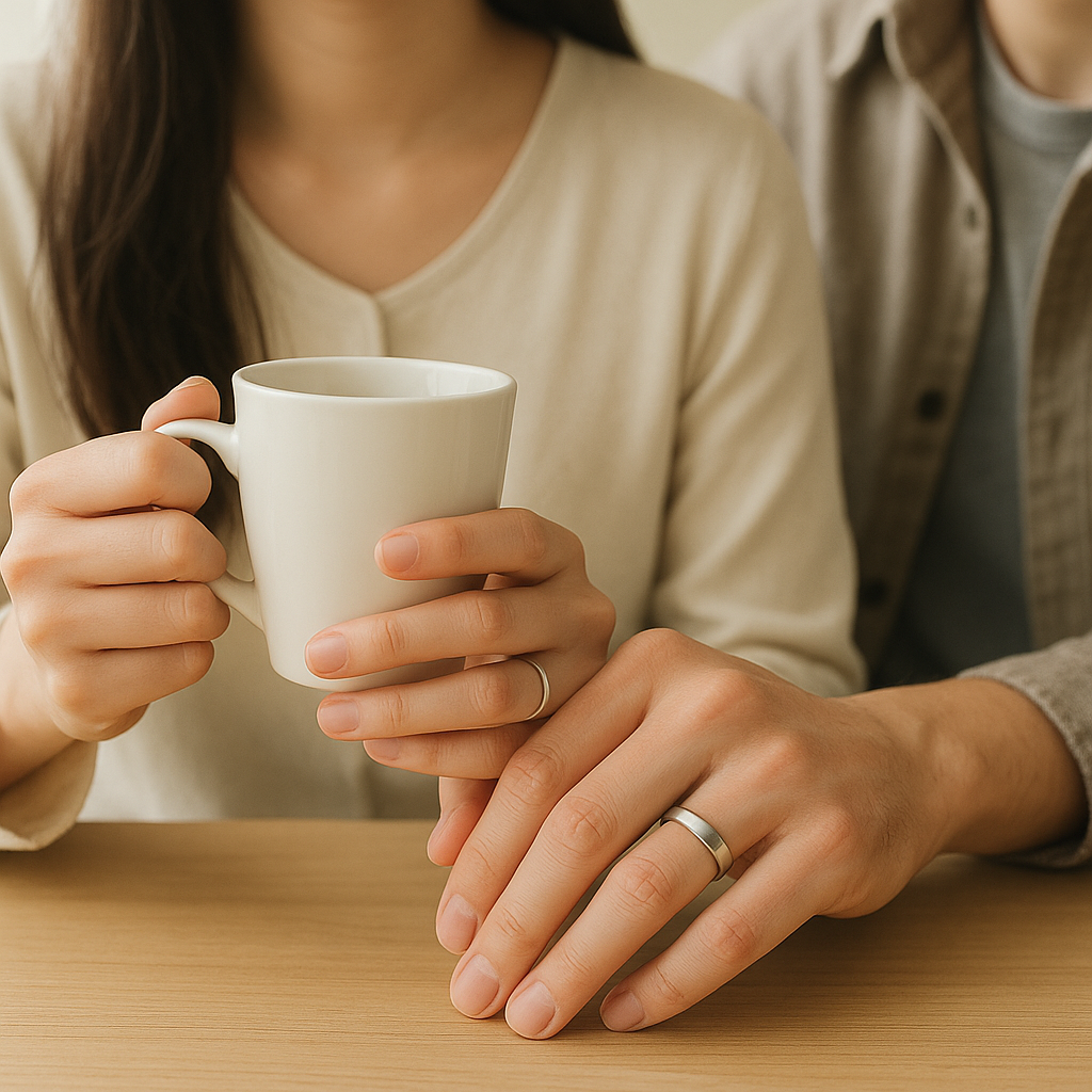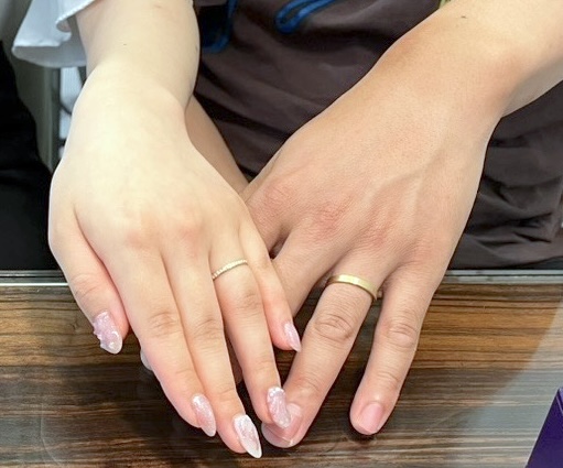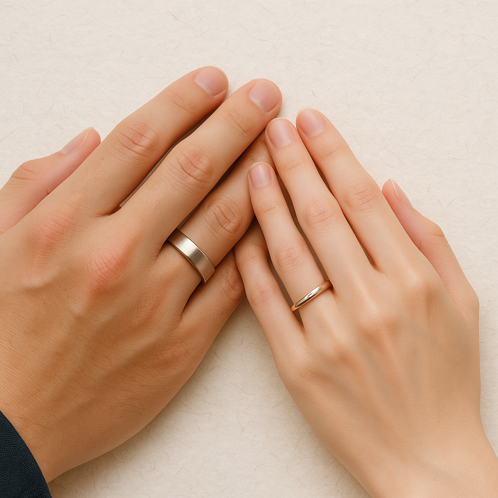 シンプルな結婚指輪は他の人と被ったり、お互いの好みや似合う幅感、手の形が異なることも。