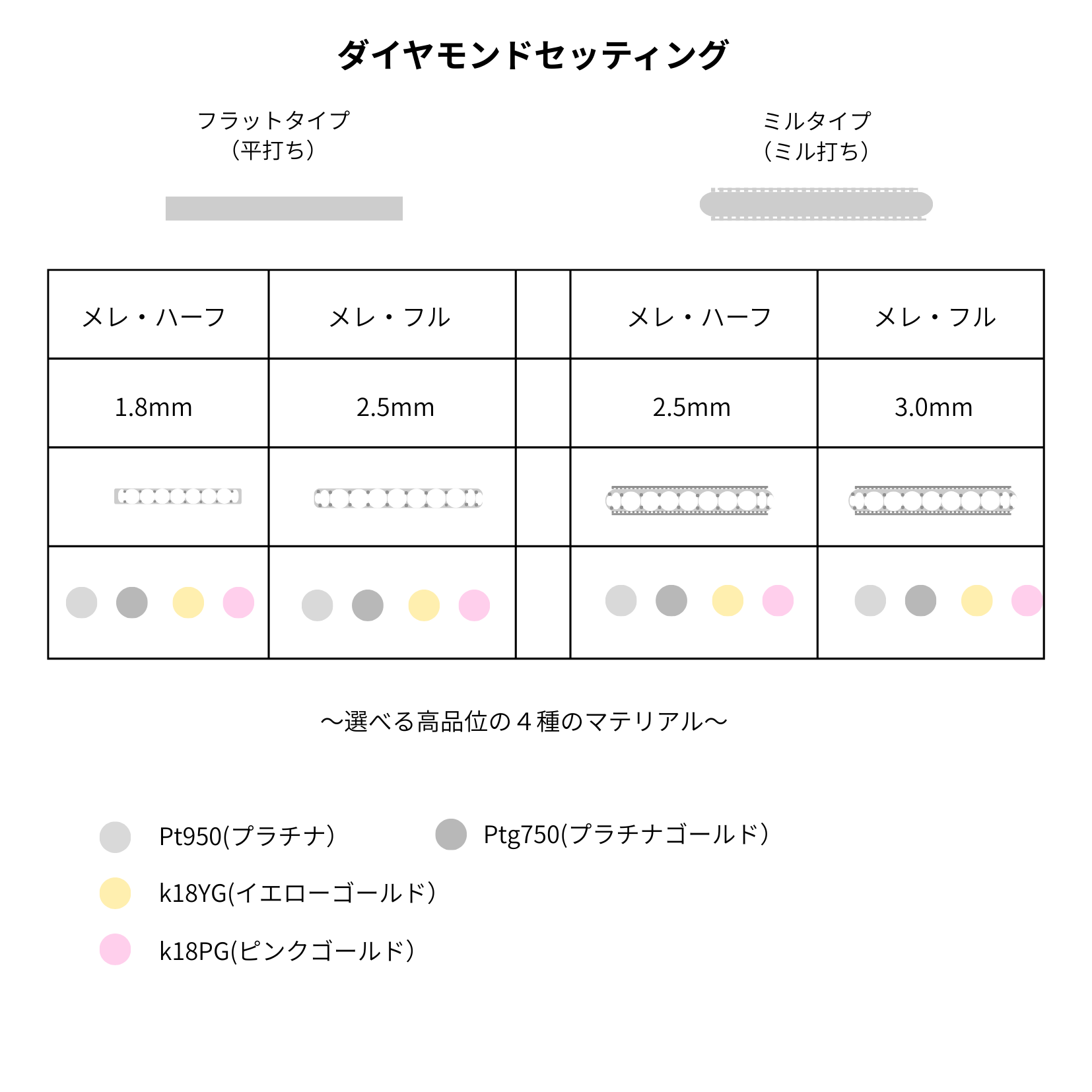 フラットタイプのことほぎと、ミルタイプのことほぎは、ハーフエタニティとフルエタニティのみのご用意。