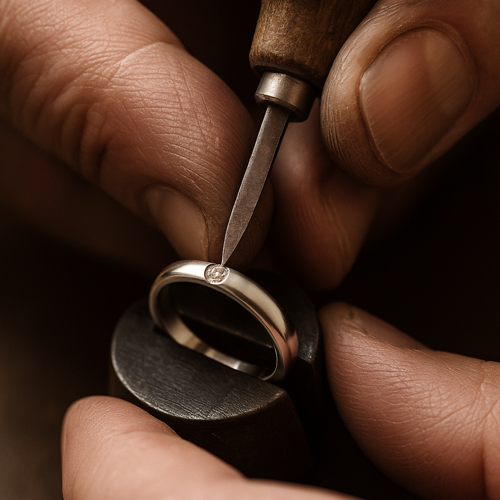 鍛造製法で作られた指輪は、強度が高くゆがみに強いのが特徴です。