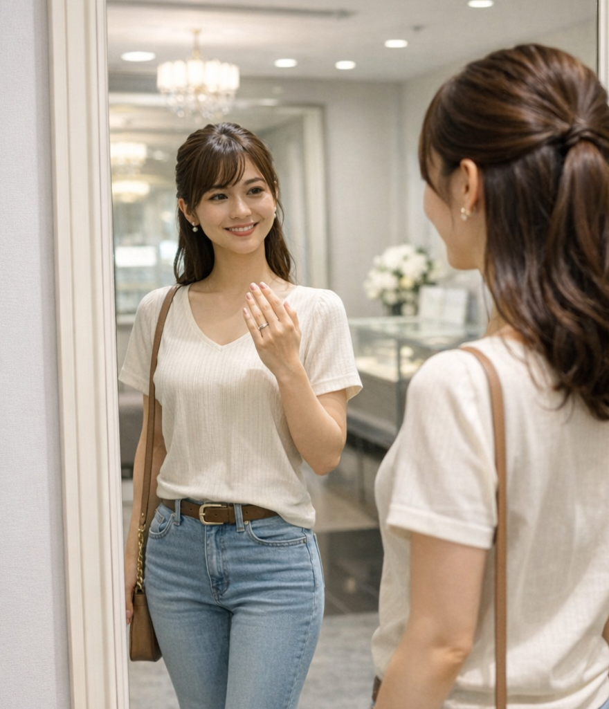 「ダイヤなしがいい」とは思っていても一度はダイヤ有りの結婚指輪をつけるのがおすすめ。