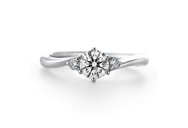 澄みきった朝にきらめく透明の雫をイメージした婚約指輪。