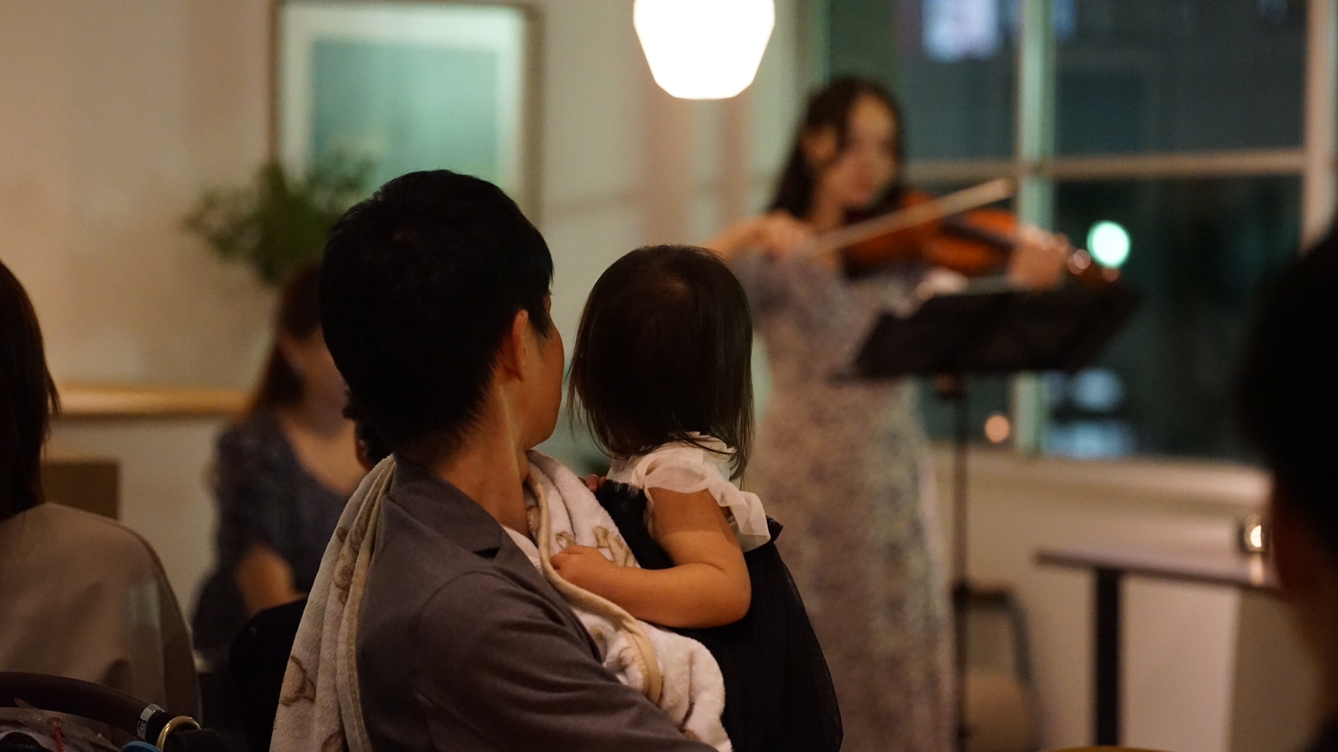 パーティーを開催したのが9月末、「芸術の秋」の時期でしたので、プロのピアニストとヴァイオリニストのお二人をお招きしました。