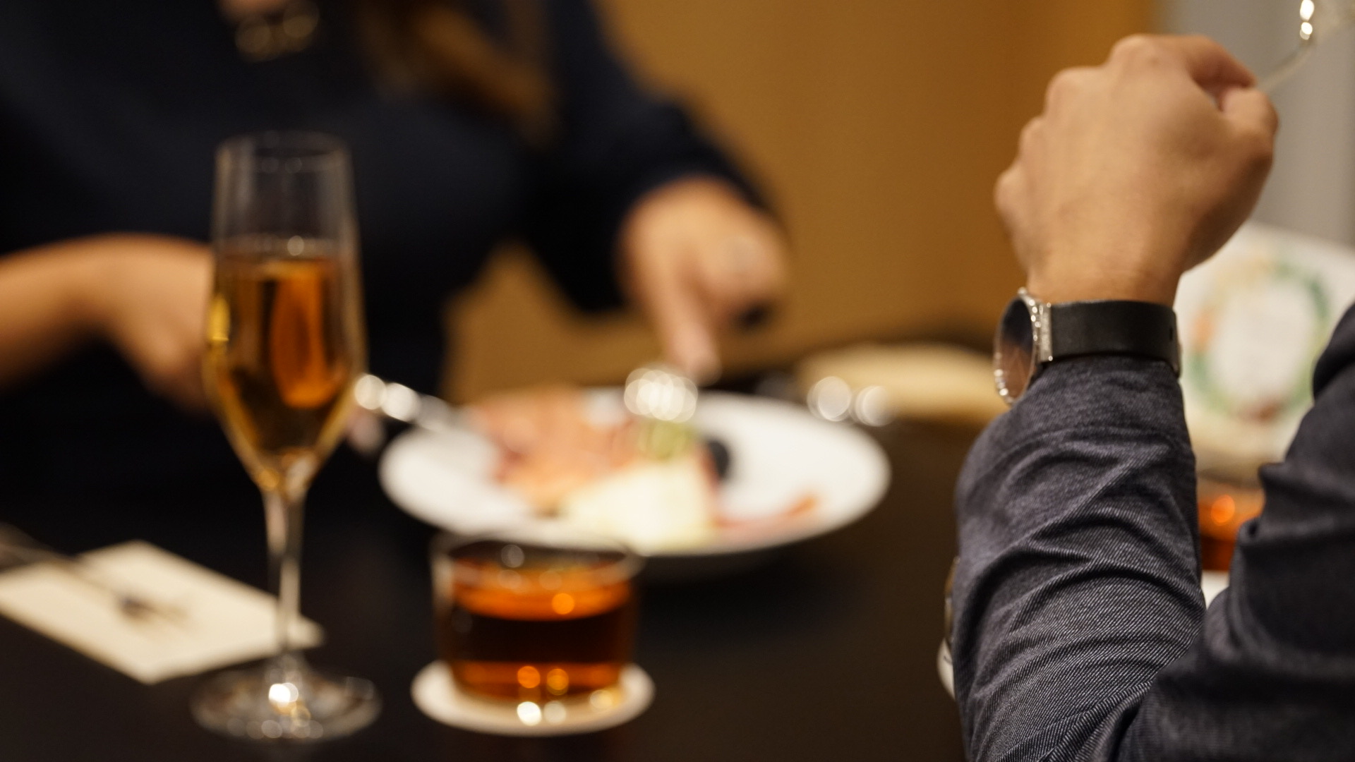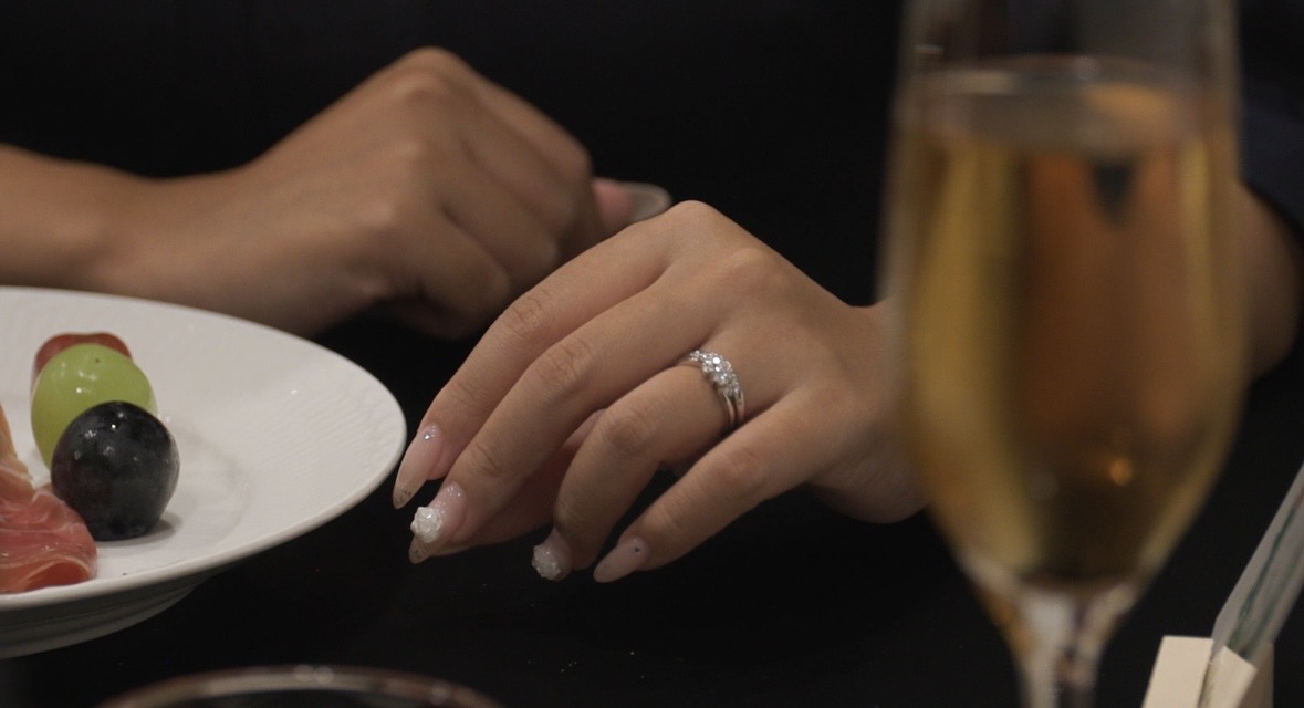 食事をお楽しみいただきながら、お客様の婚約指輪や結婚指輪などを撮影。