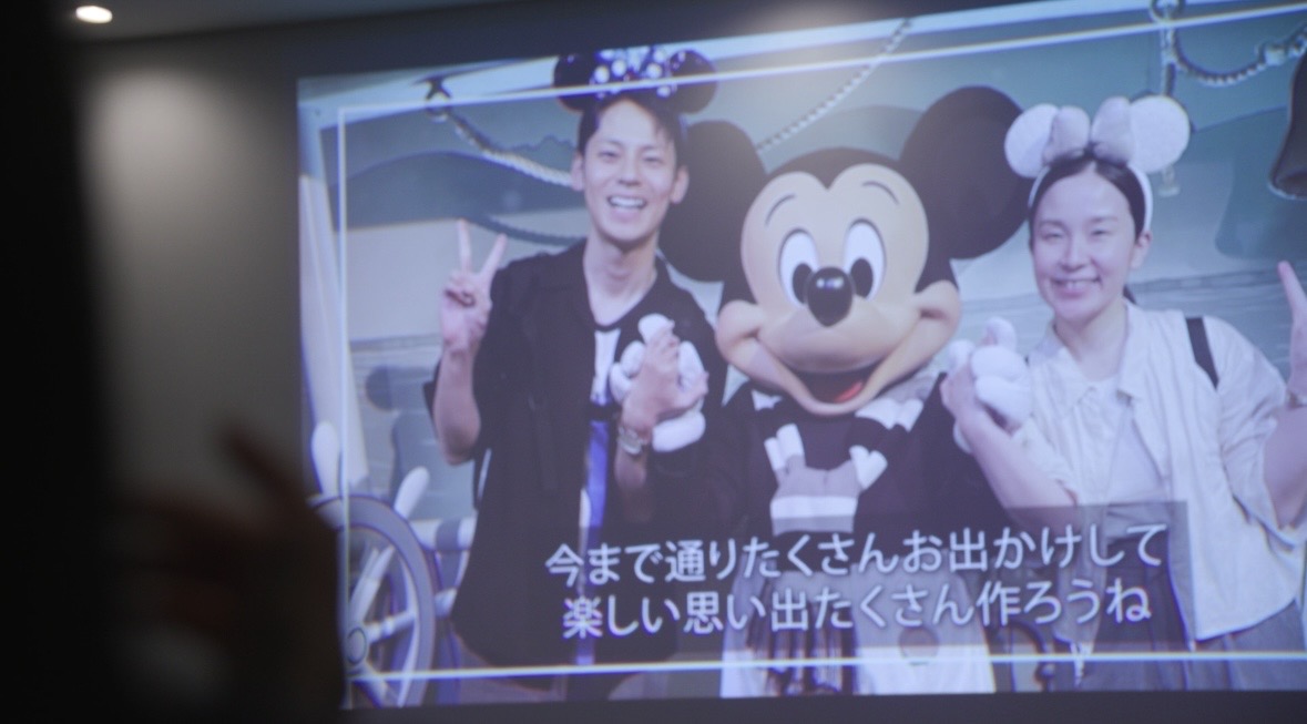2階へ場所を移し、旦那様が奥様のために作った映像をプロジェクターを使いご覧いただきました。