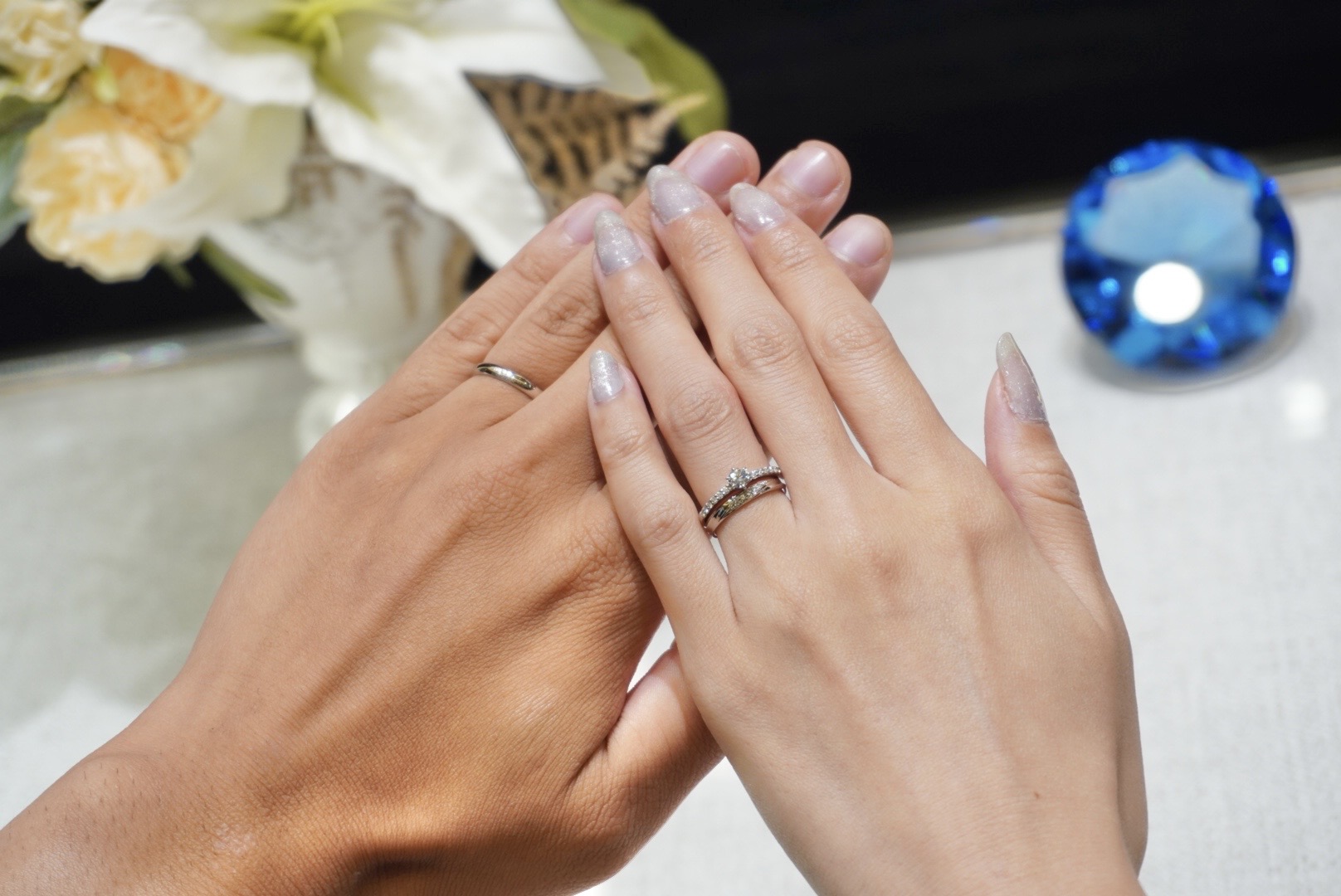 華やかなデザインが好きで、いろんなデザインを着け比べることができて良かったです。スタッフの方と相談しながらお気に入りの結婚指輪を見つけられました。毎日常に着けていますが、見るたびに可愛いなと思います!