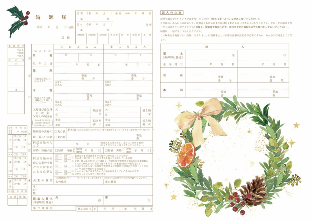 ※役所で発行している婚姻届以外は受理しないとしている自治体もございますので、あらかじめご確認くださいませ。