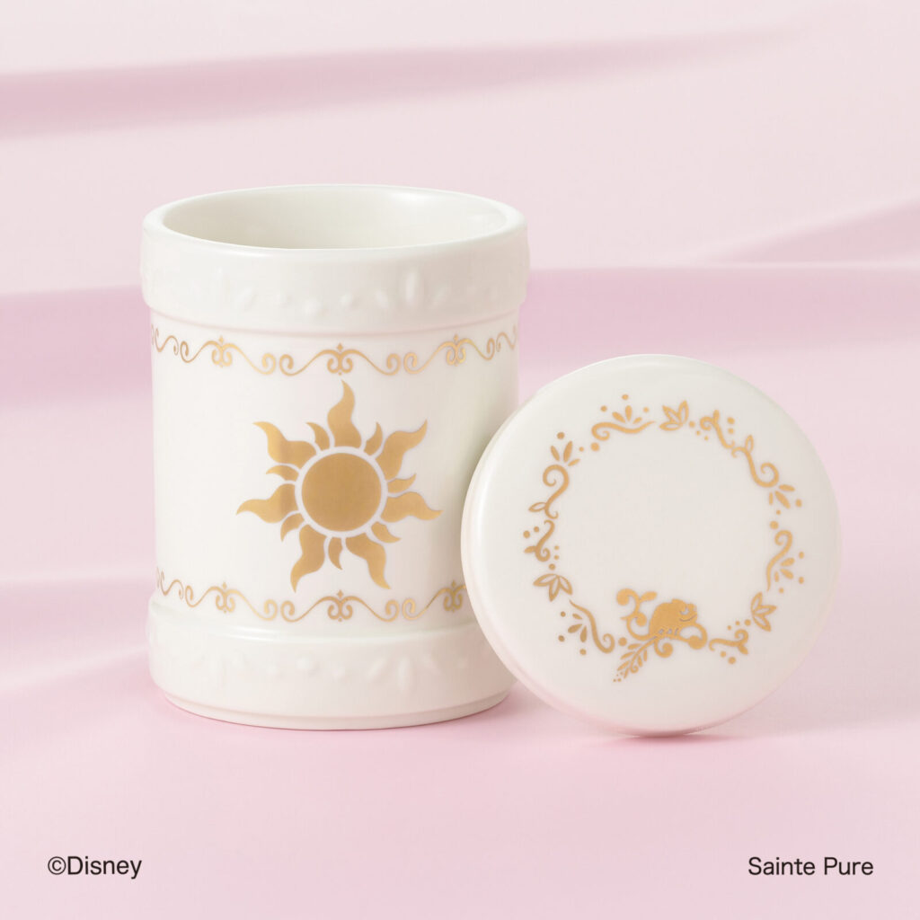 作中に出てくる灯籠のデザインをメインに、ラプンツェルらしいモチーフを散りばめたマルチにお使いいただける小物入れです。