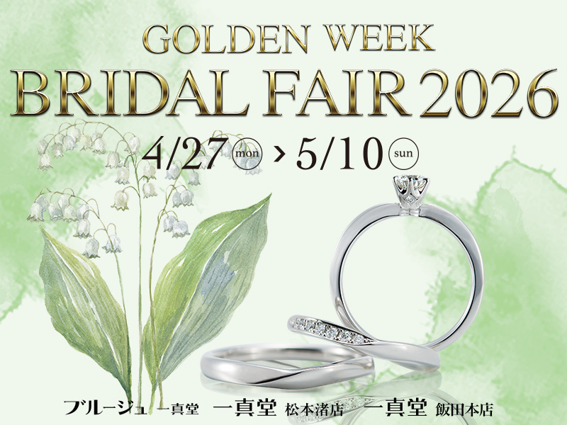 一真堂では、4月27日(月)〜4月30日(木)までの期間、ゴールデンウィークブライダルフェアを開催いたします。